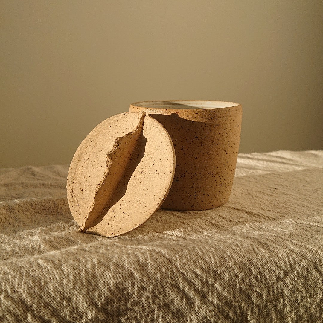 The Gunung jar is weelthrown and finished with handformed detailing on the lid. The unglazed outer surface is the alluring bare clay itself. The interior is lined with a foodsafe glaze.